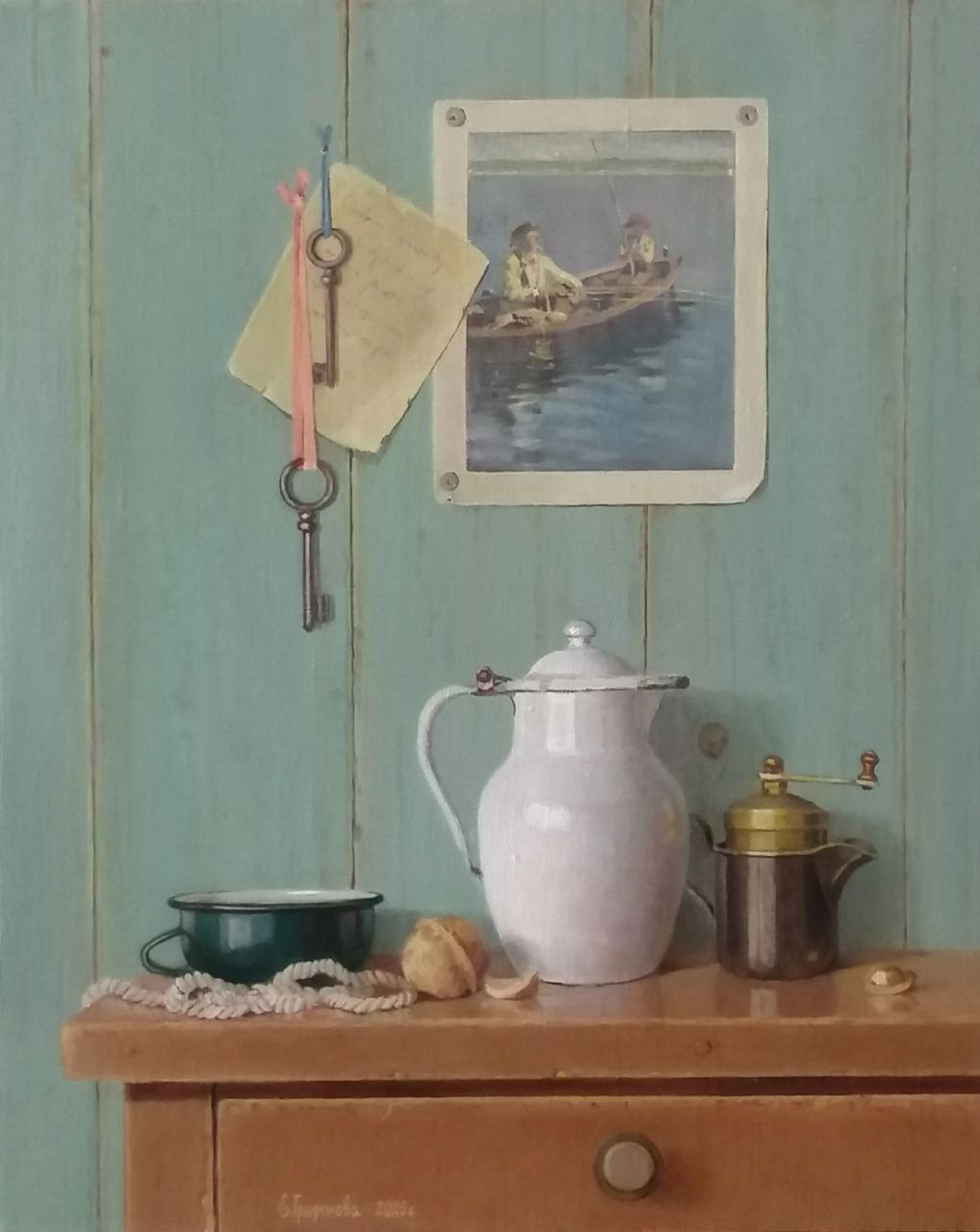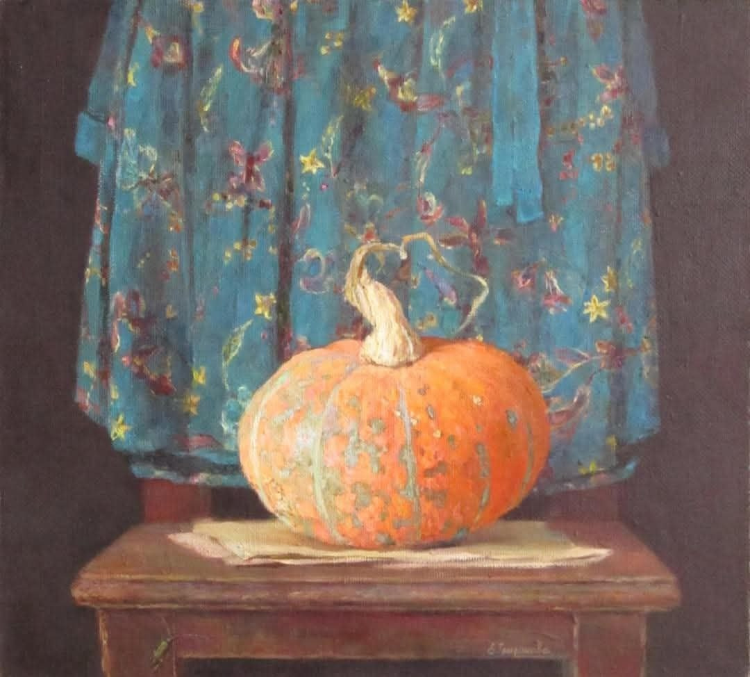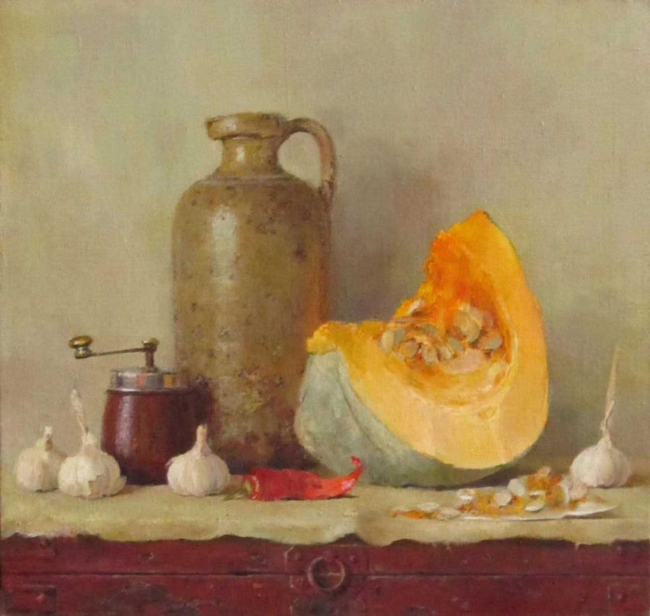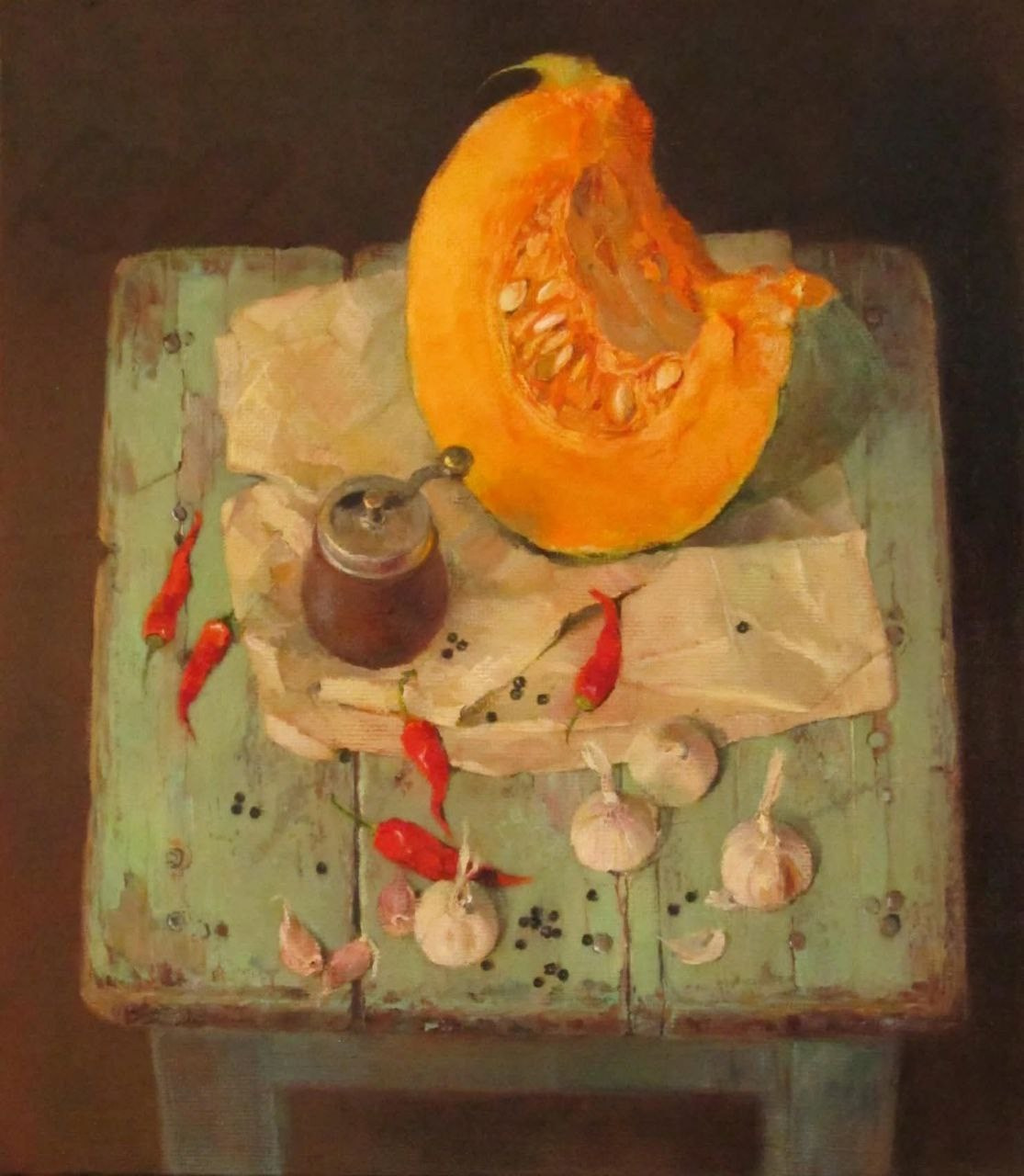 Натюрморт с керосиновой лампой и кусочком тыквы