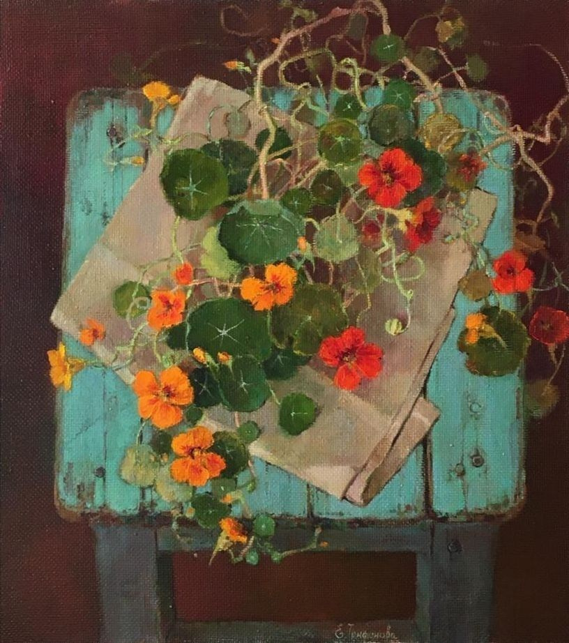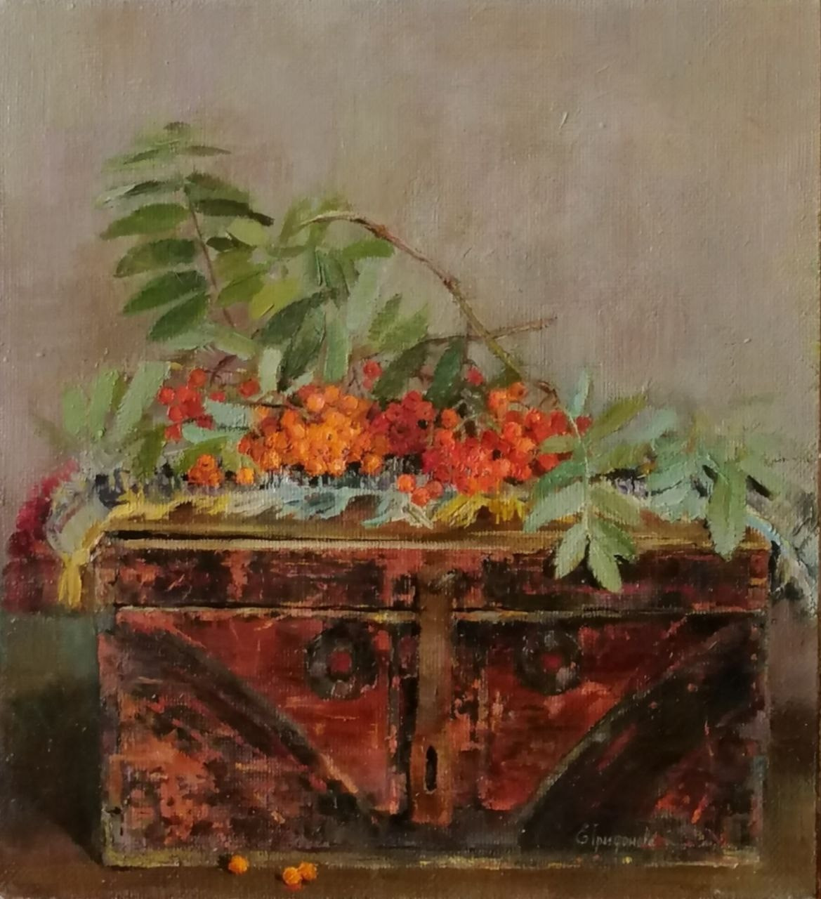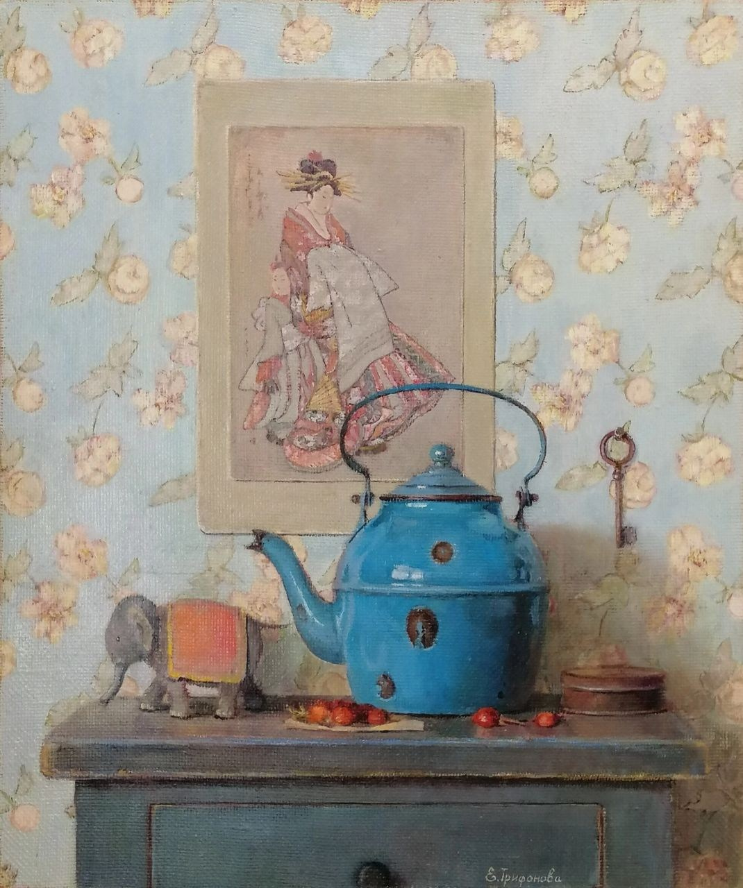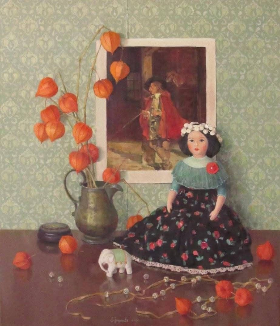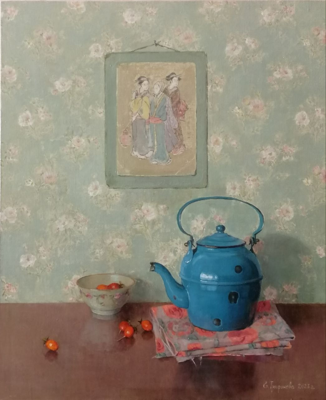 Натюрморт с керосиновой лампой и кусочком тыквы